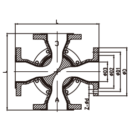 2、本閥設計為四通圓弧式通道分流體,閥芯設計為帶頂尖式圓弧結構,實現全開時流道暢通無阻力。